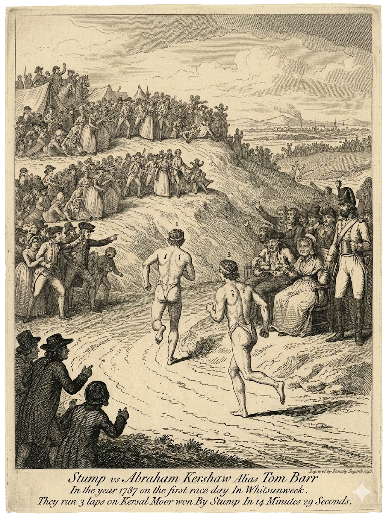 “35 courses d'hommes nus tenues sur Kersal Moor entre 1777 et 1811”