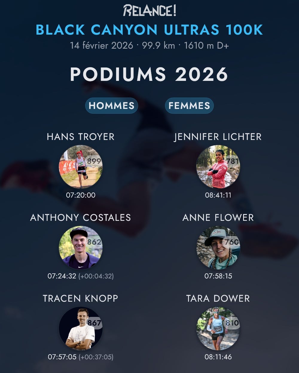 La ferveur entourant la Black Canyon provient également de son lien avec la mythique Western States 100 (WSER). En tant que course “Super Golden Ticket”, elle offre aux trois premiers hommes et trois premières femmes un accès direct à la WSER, court-circuitant une loterie aux probabilités quasi nulles. Cette année, un prize money de 16 000 $ a également été distribué, poussant également à la qualité du plateau des coureurs réunis.