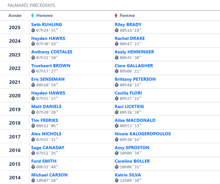 Fondée en 2014 par Jamil Coury, figure emblématique d’Aravaipa Running, la course ne comptait à ses débuts que 42 courageux finisseurs. Depuis, le podium a accueilli quelques noms prestigieux du trail américain parmi lesquels Sage Canaday, Kaci Lickteig, Clare Gallager ou Hayden Hawks. En douze ans, l’événement a muté pour devenir un rendez-vous incontournable, intégrant le circuit des World Trail Majors en 2024.