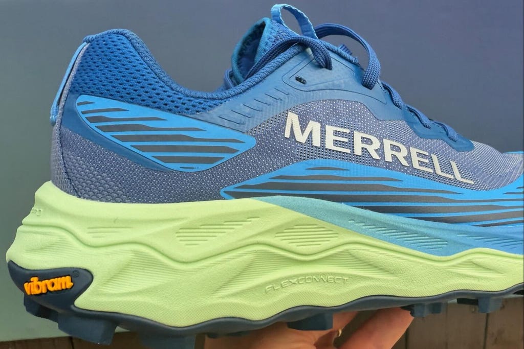 Grosse annonce de la marque pendant la semaine UTMB : la Merrell Agility Peak 6 avec un avant-pied davantage protégé. Le stack annonce 38 mm au talon et 30 mm à l’avant, pour un drop de 8 mm : un choix dans l’air du temps (on pense à Hoka) qui pourrait convenir à un déroulé plus posé. La semelle extérieure Vibram est très marquée, avec des crampons en croix de 5 mm et des zones évidées (encore une fois comme Hoka) pour faciliter le débourrage. Une rock plate complète le dispositif : d’abord pour la protection, mais aussi pour apporter de la tenue sous le pied et renforcer l’efficacité des crampons en terrain accidenté.